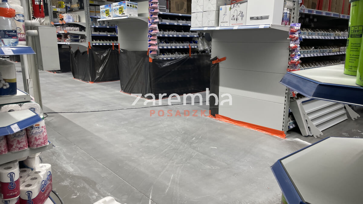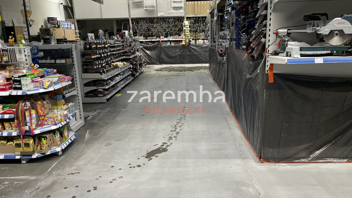 Inwestor zgłosił się z problemem ponad 20-letniej posadzki betonowej na hali sprzedaży w markecie budowlanym PSB Mrówka w Oleśnicy. Choć bardzo często myje posadzkę, to jednak setki klientów odwiedzających sklep każdego dnia zrobiły swoje. Posadzka po tym czasie stała się już wytarta, lekko pyląca. Dodatkowo zaczęła mocniej przyciągać zabrudzenia. Przestała też schludnie wyglądać. Inwestorowi zależało na tym, aby poprawić estetykę powierzchni, doświetlić sklep i uczynić doświadczenie zakupowe swoich klientów jeszcze przyjemniejszym. Chciał, aby kupujący mieli poczucie przyjemnej, estetycznej powierzchni handlowej, która świeci czystością. Jednocześnie sporym wyzwaniem okazało się to, że przy prężnie działającej placówce handlowej nie ma możliwości, aby ją zamknąć, albo ograniczyć dostęp do powierzchni handlowej i części asortymentu na czas prowadzenia prac. Dlatego trzeba było zastosować technologię szybką – dającą natychmiastowe rezultaty i niebędącą uciążliwą dla klientów sklepu wielkopowierzchniowego.